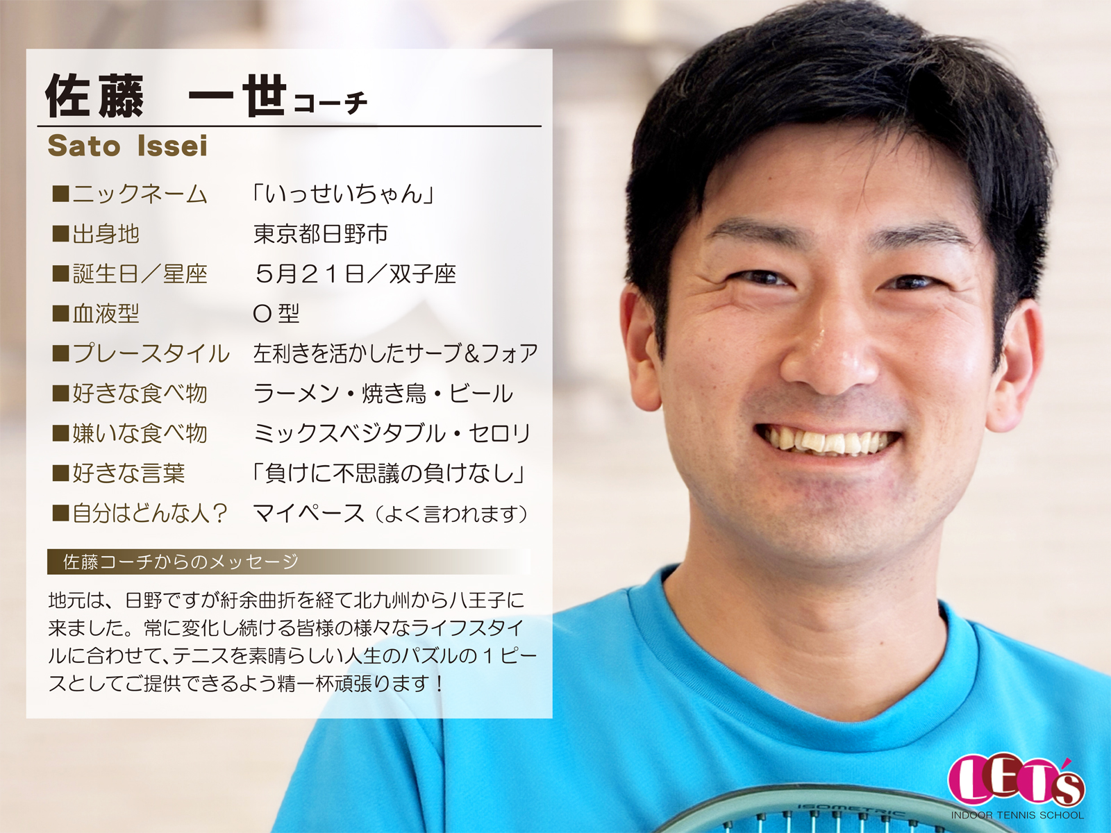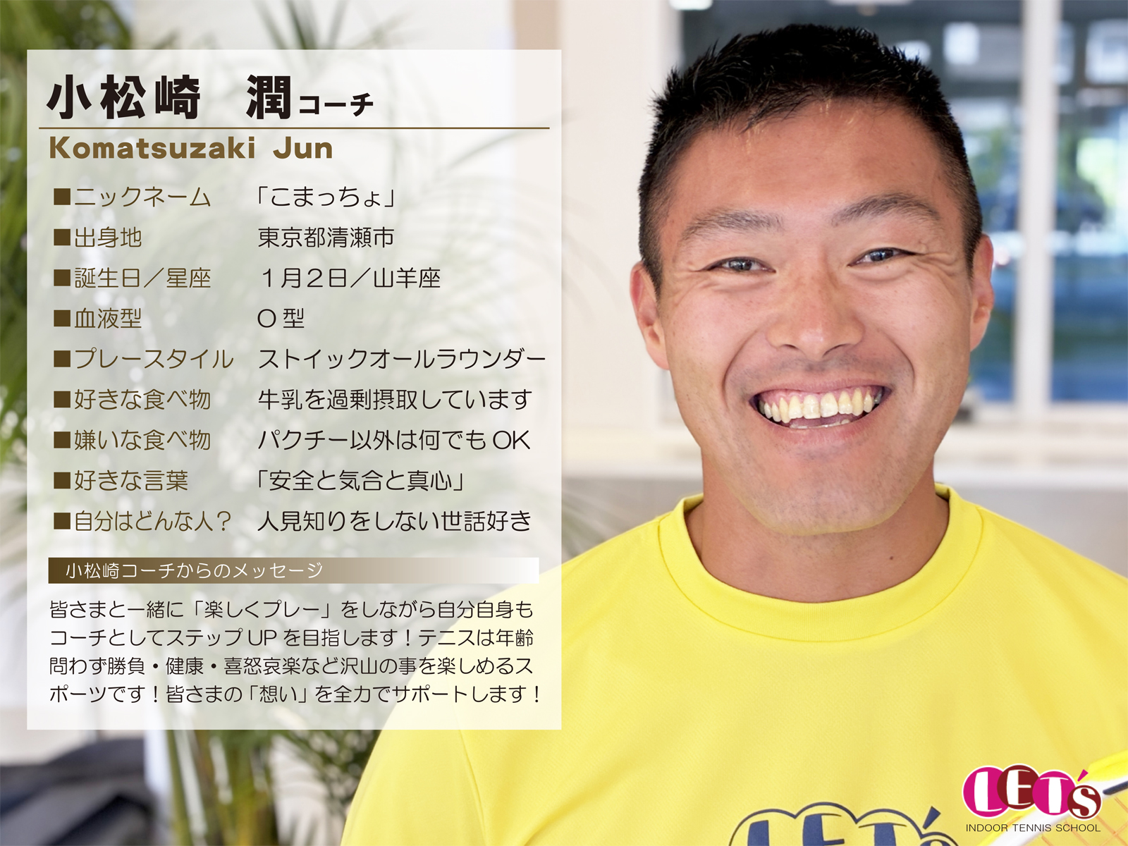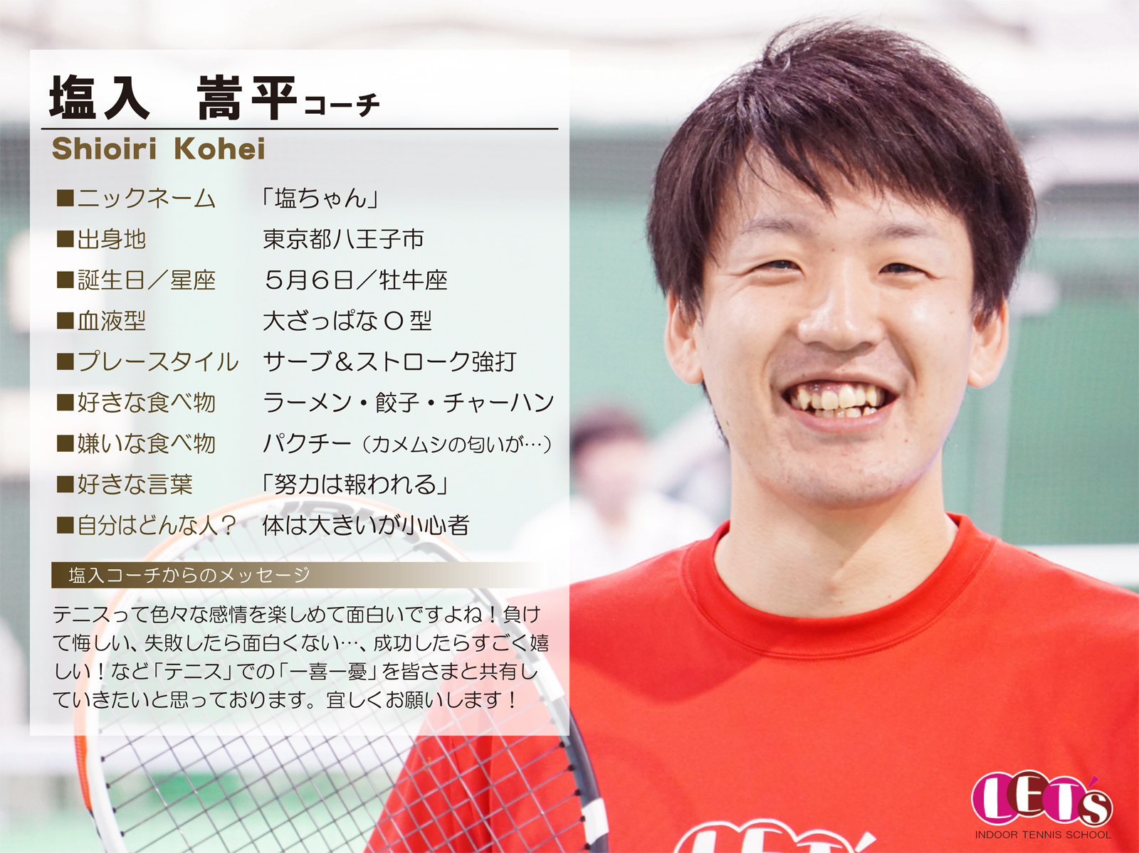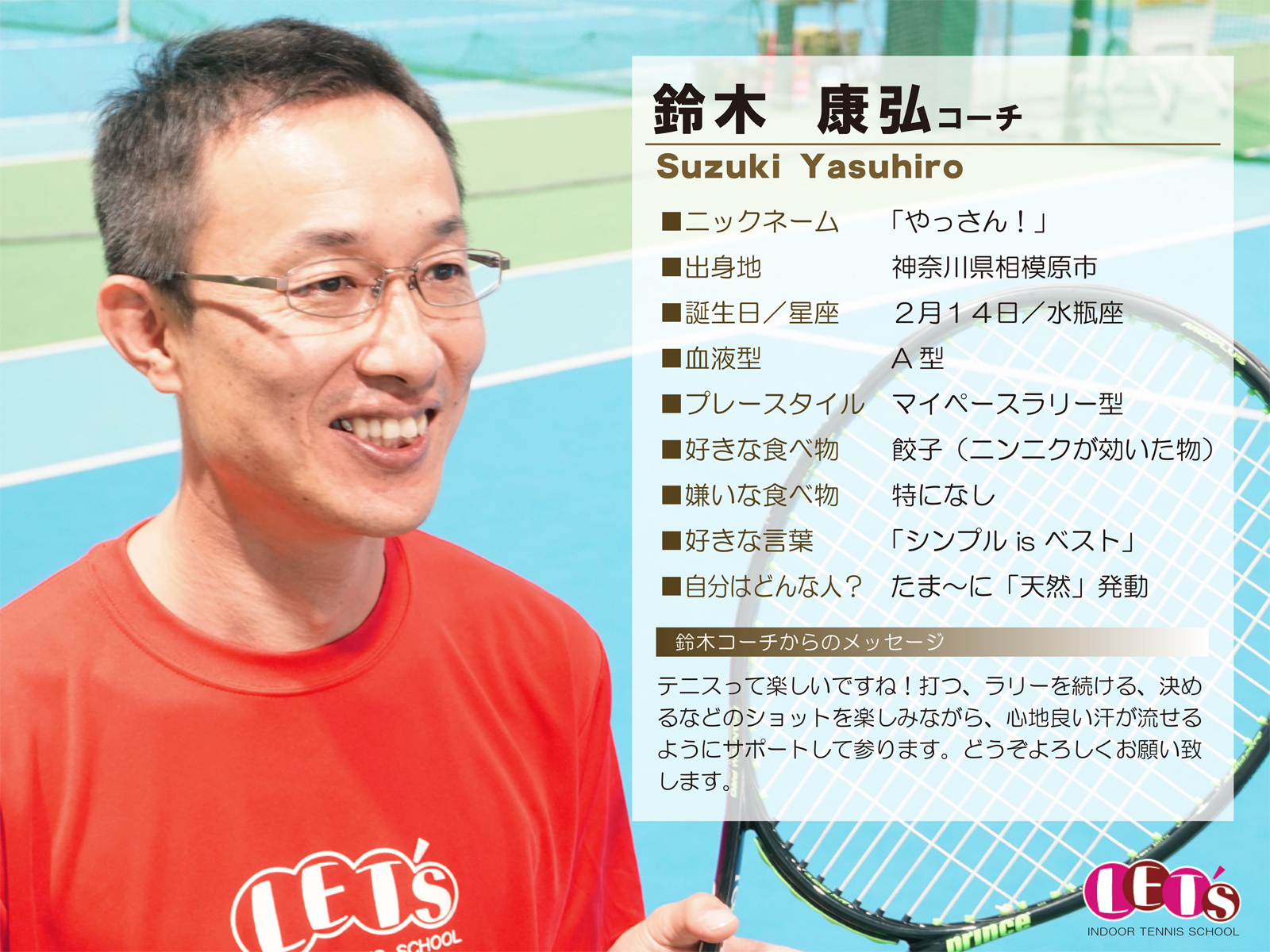 スタッフ紹介 | レッツ!インドアテニススクール八王子西|初心者大歓迎!