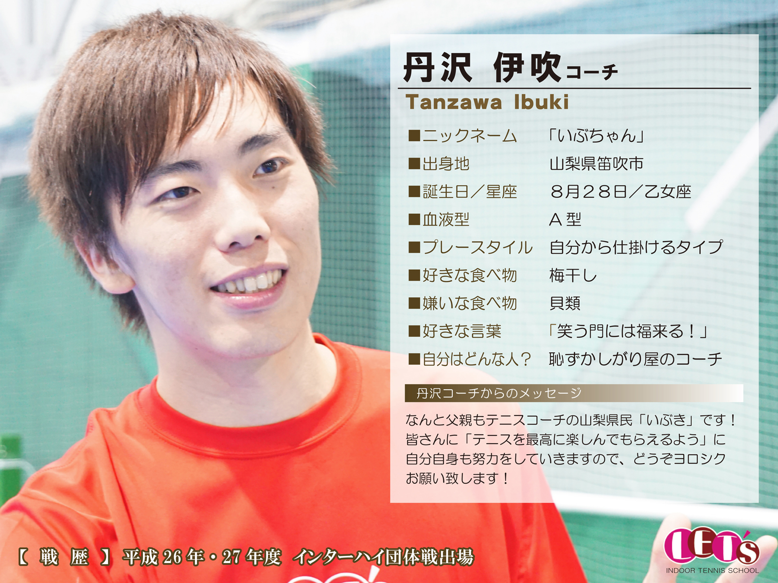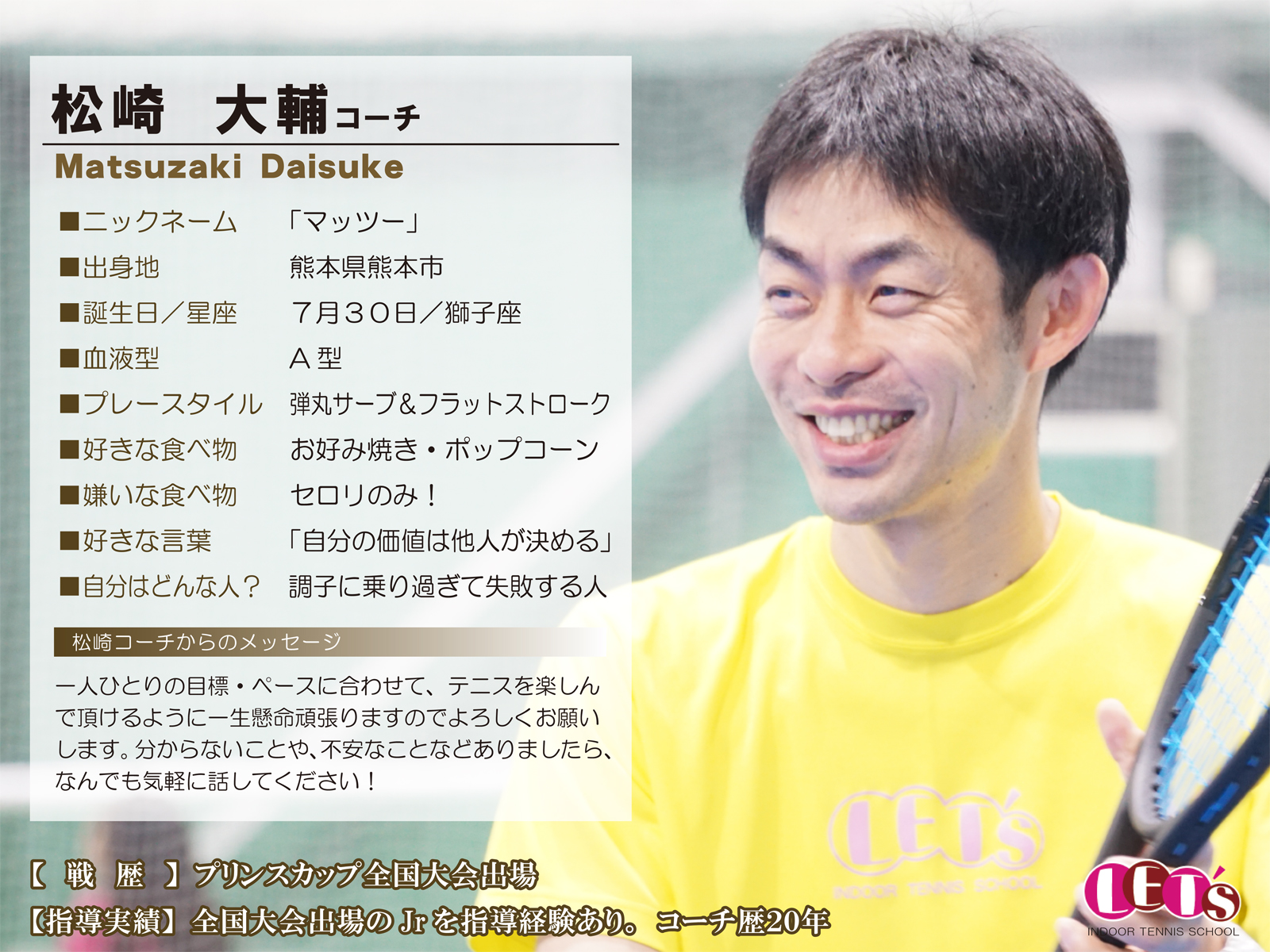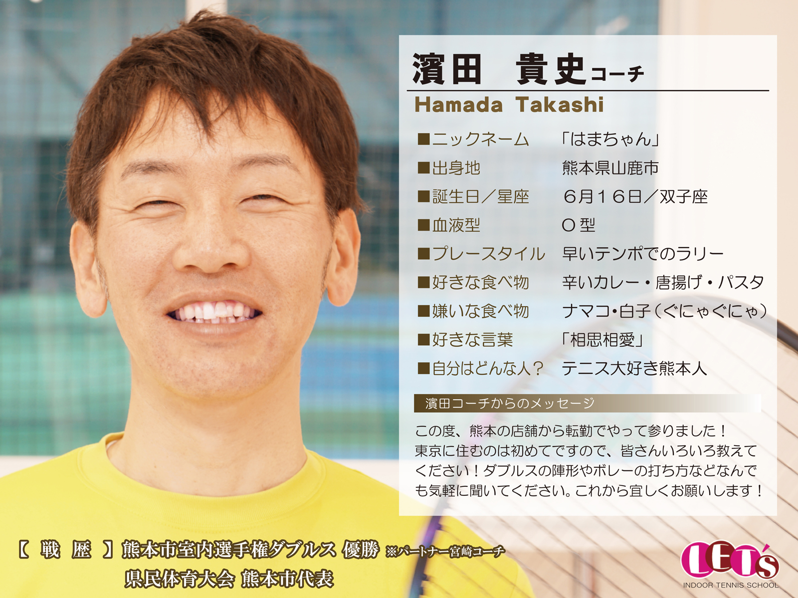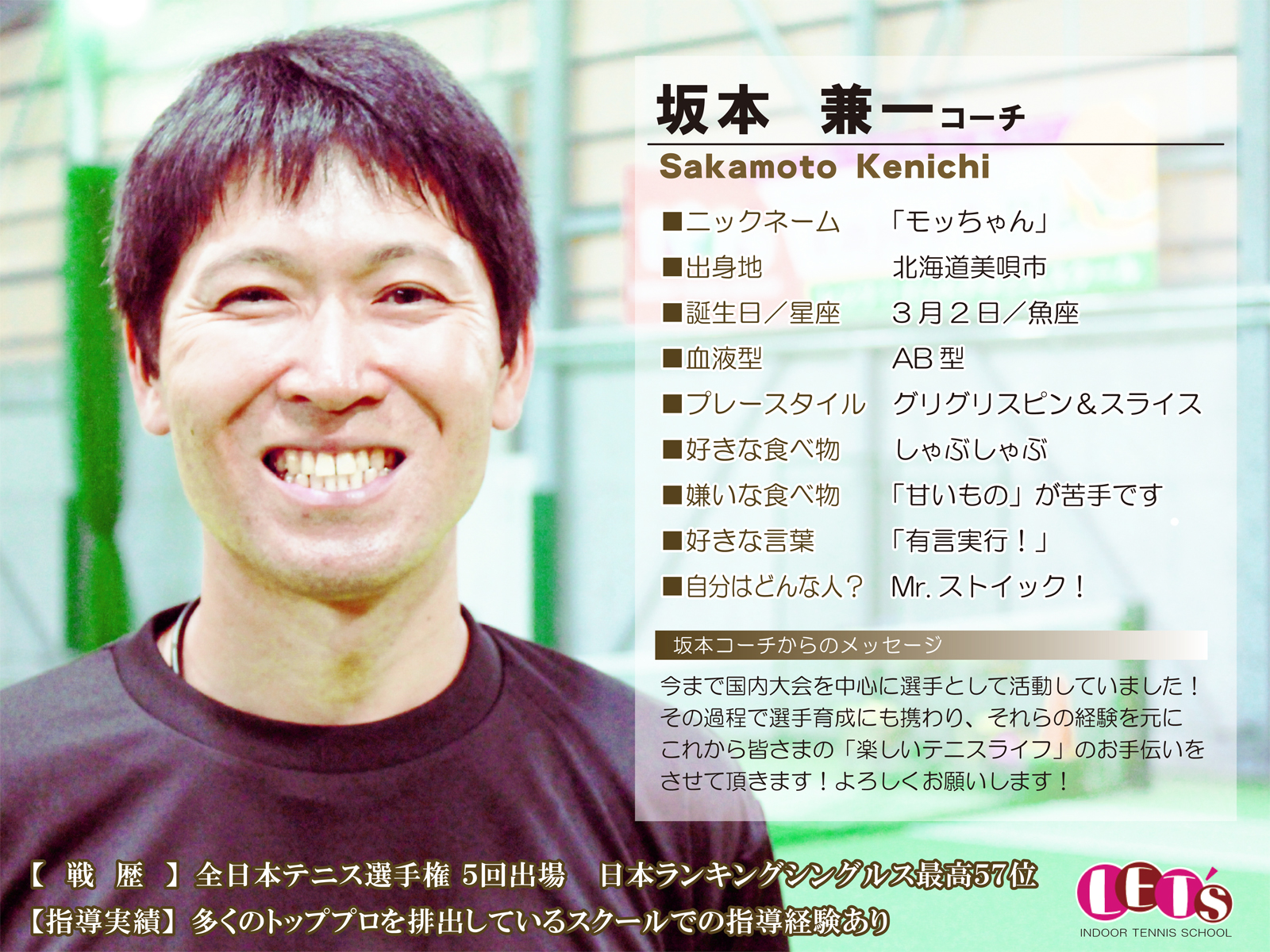スタッフ紹介 | レッツ!インドアテニススクール八王子西|初心者大歓迎!