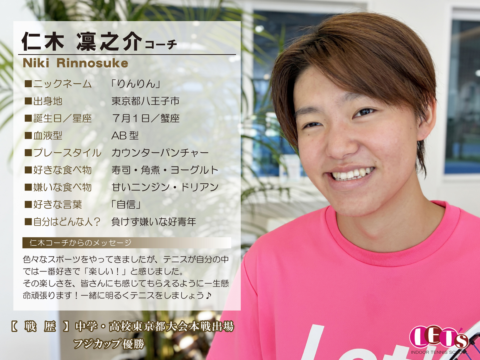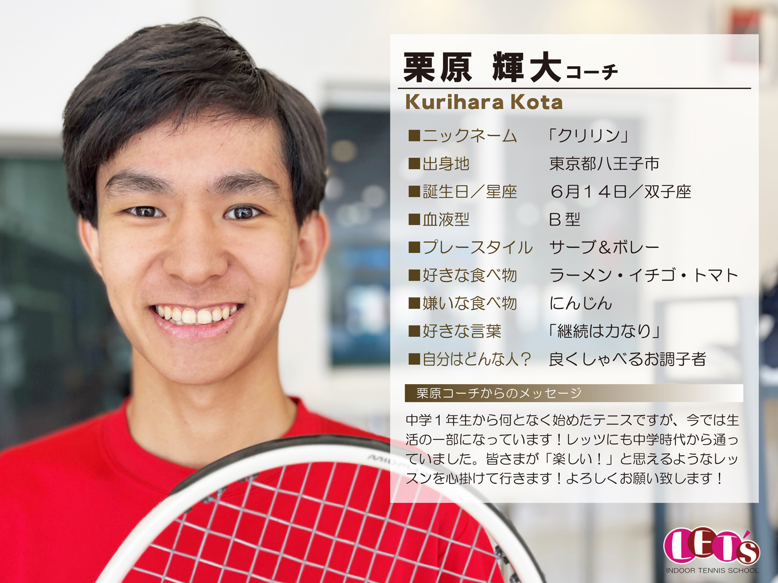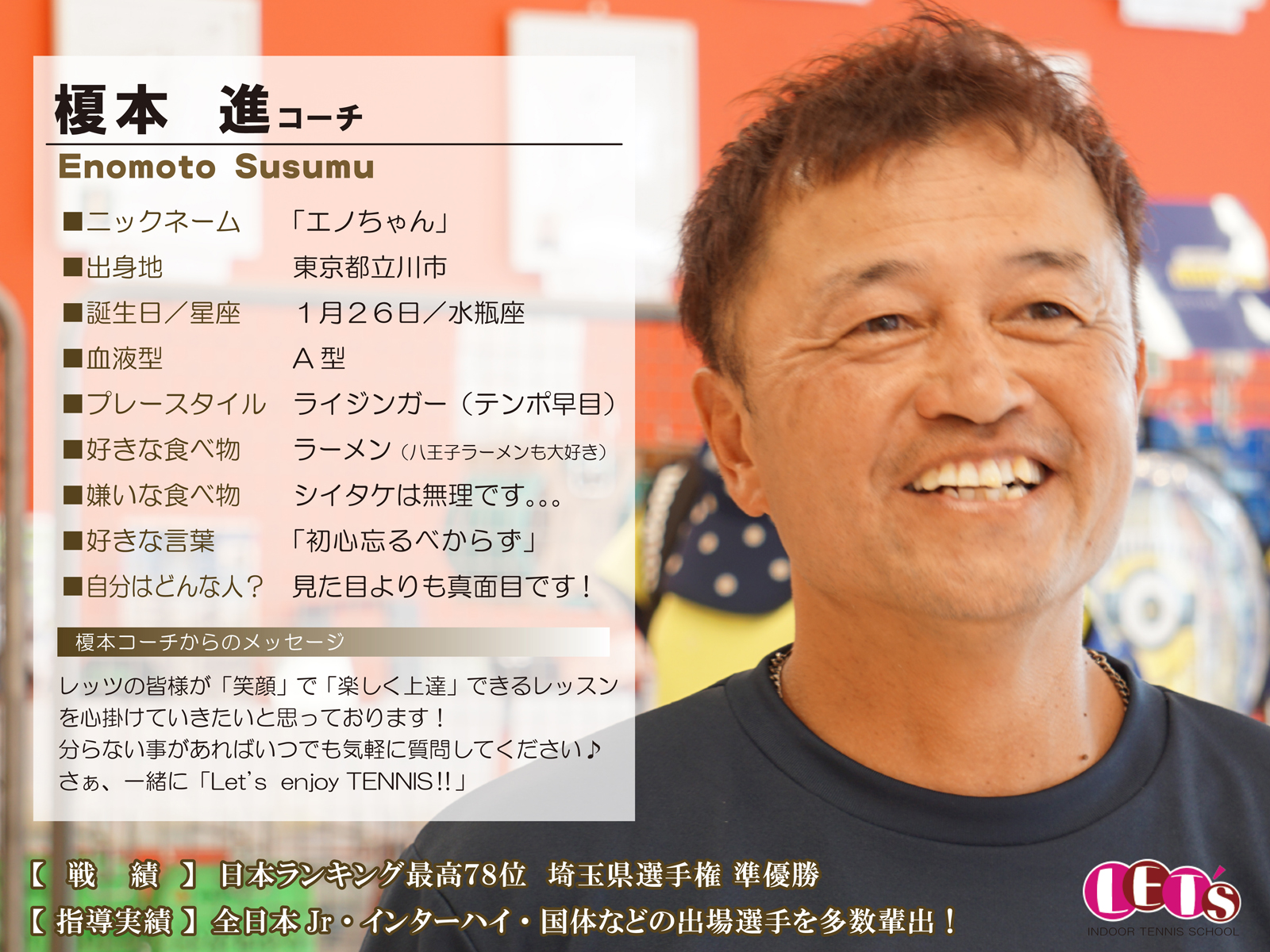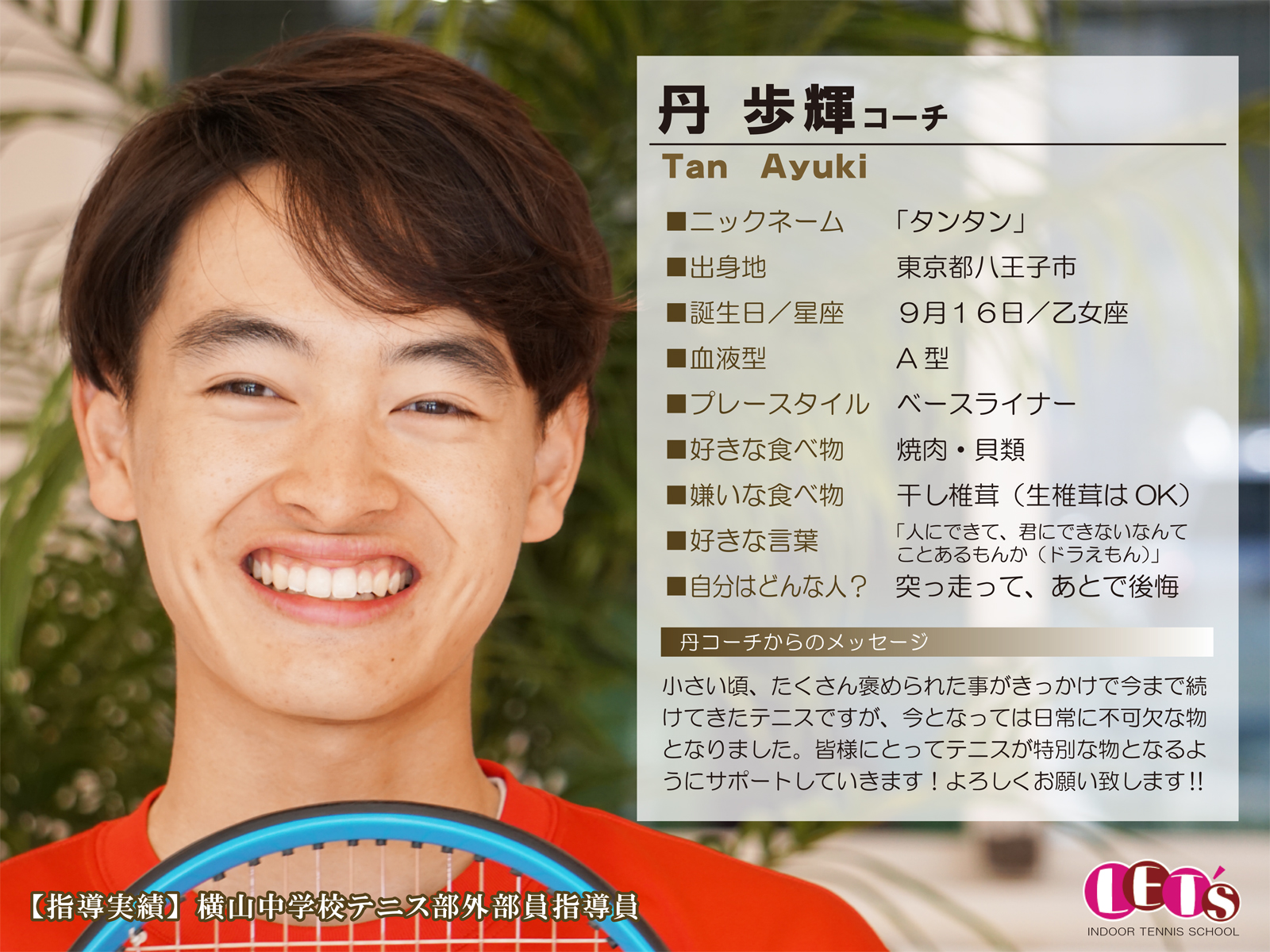 スタッフ紹介 | レッツ!インドアテニススクール八王子西|初心者大歓迎!