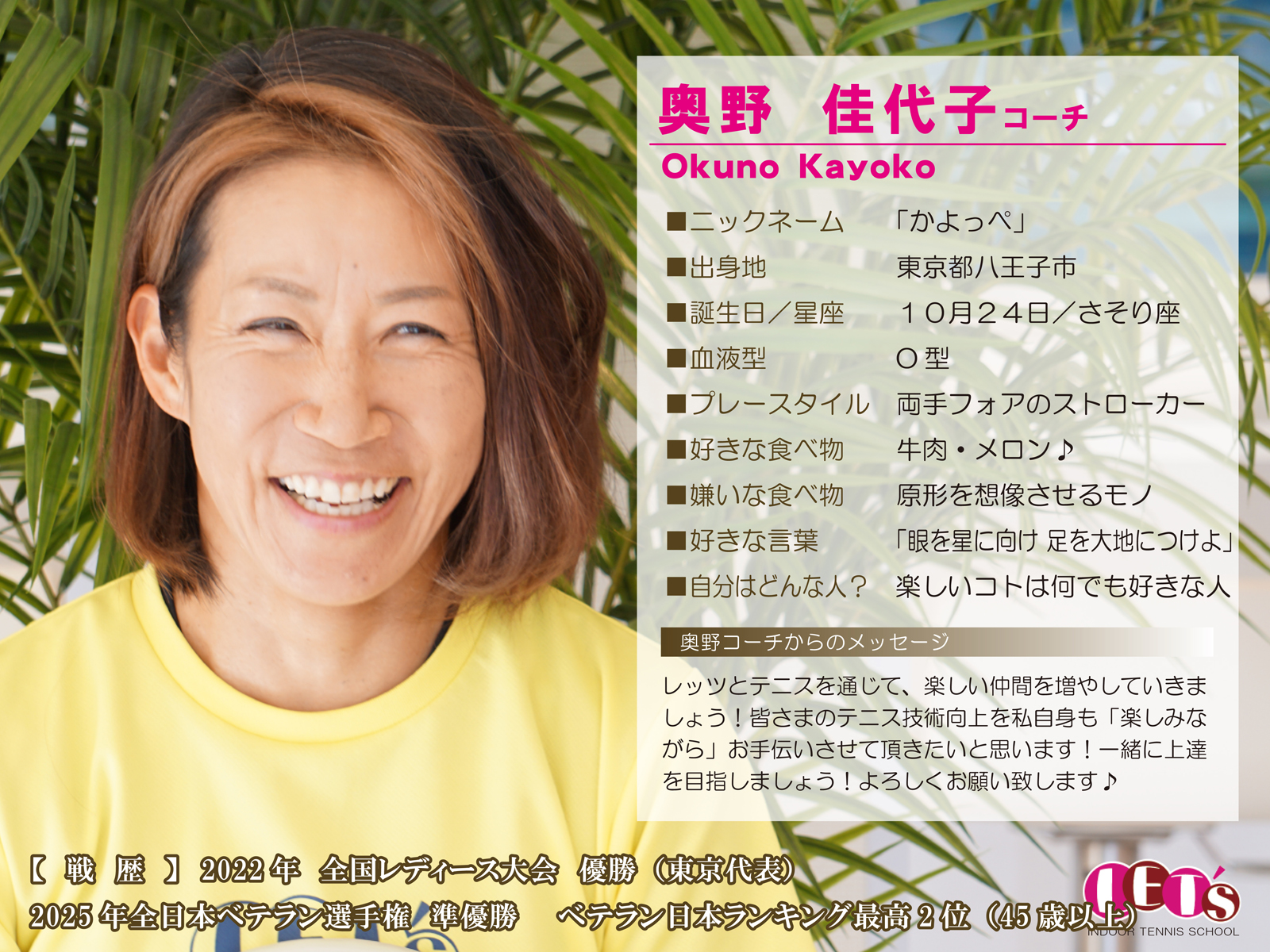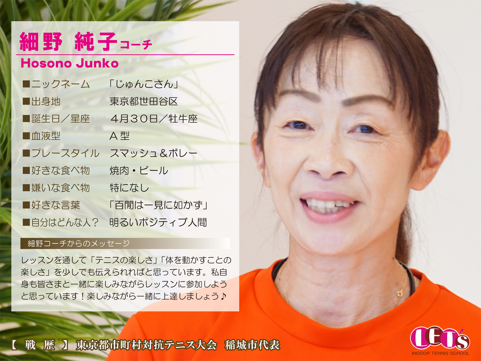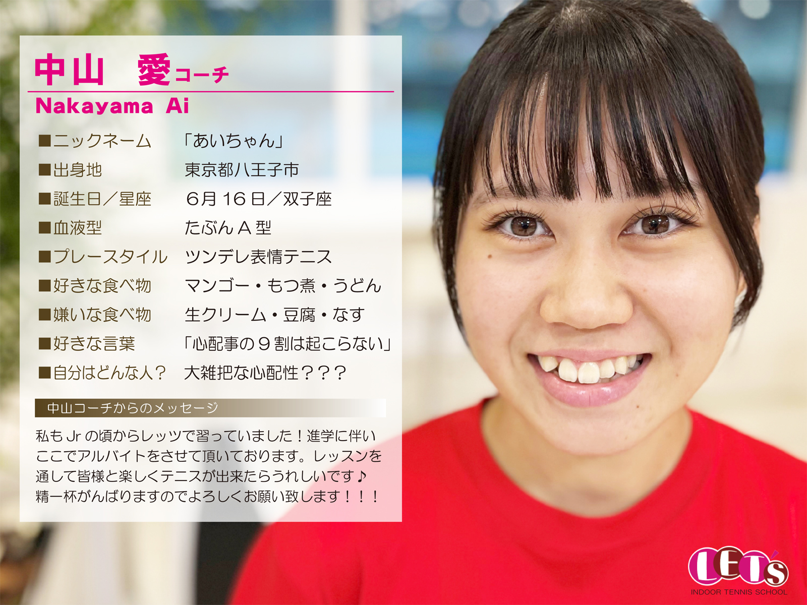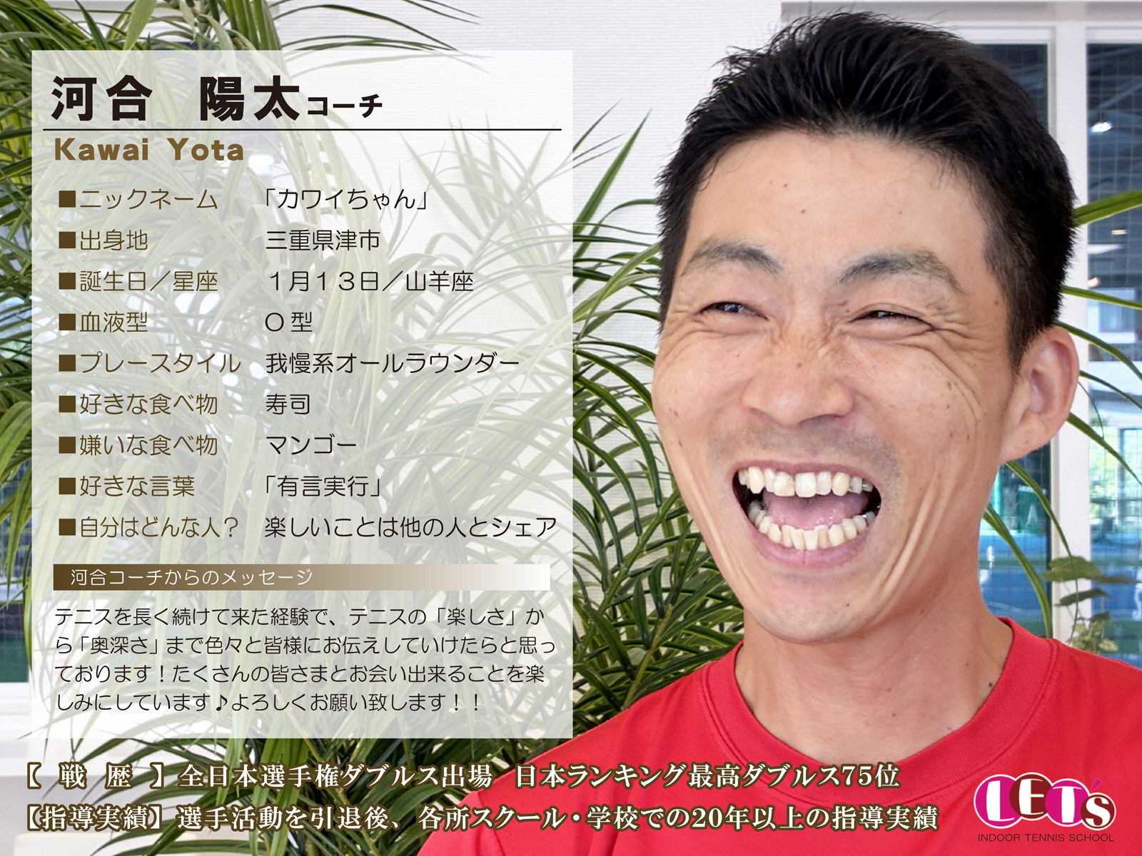 スタッフ紹介 | レッツ!インドアテニススクール八王子西|初心者大歓迎!